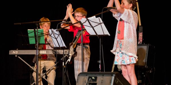 Jazz and Performance Camps conclude with an exciting Sunday concert, where students perform live on stage with lights, microphones, and a full audience.